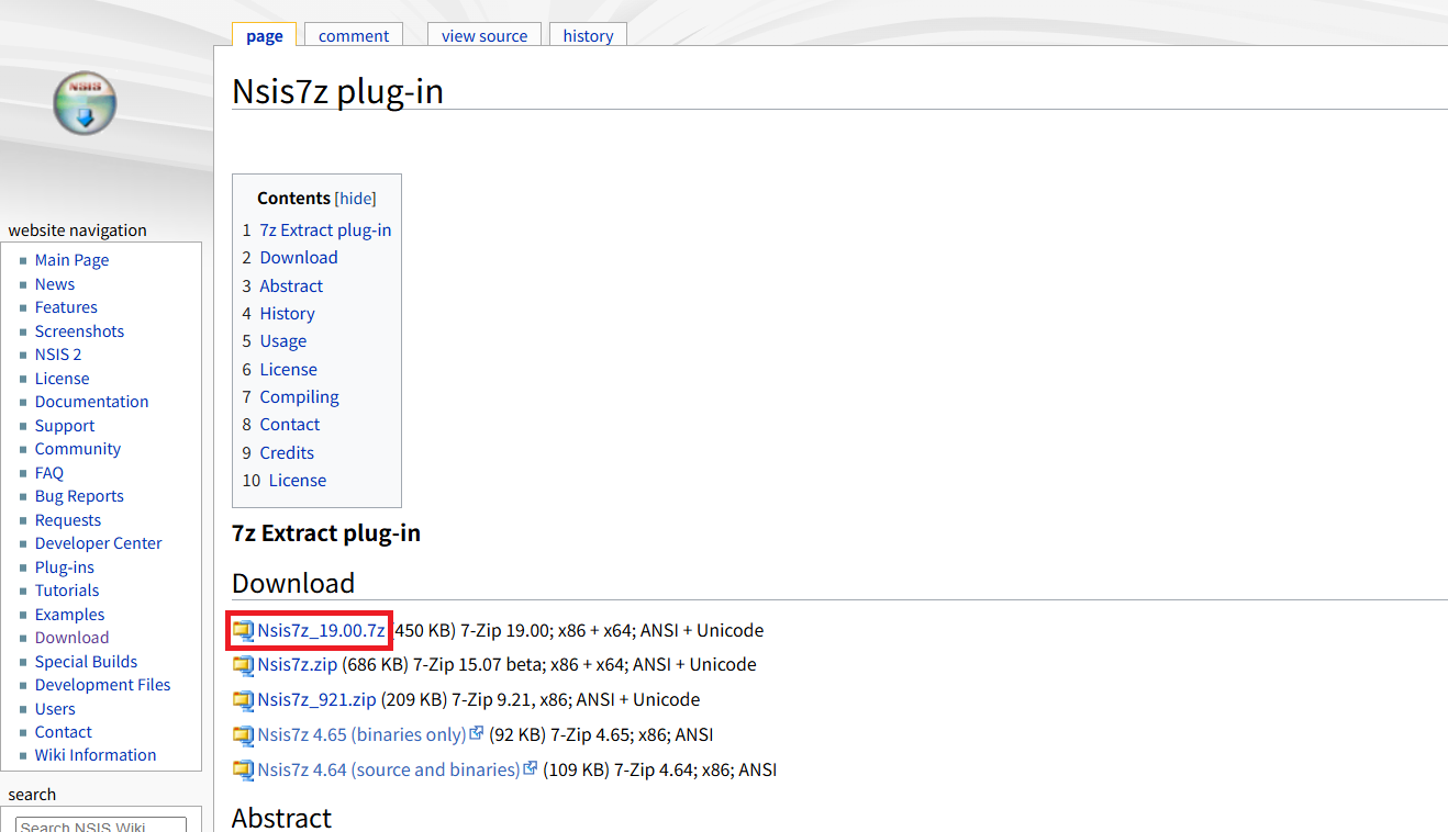 먼저 NSIS 7z 플러그인 페이지에서 7z 플러그인을 다운로드 한다.